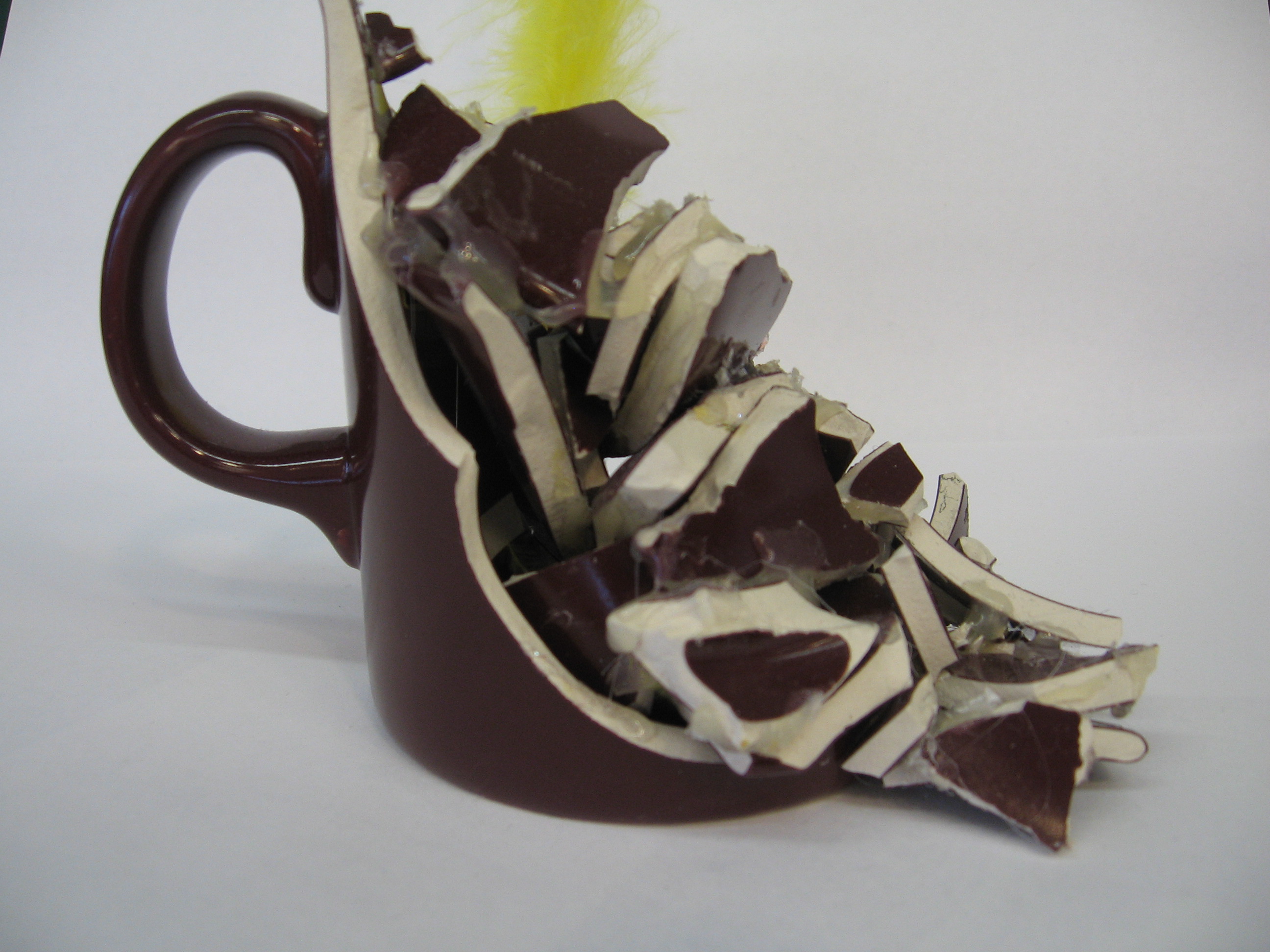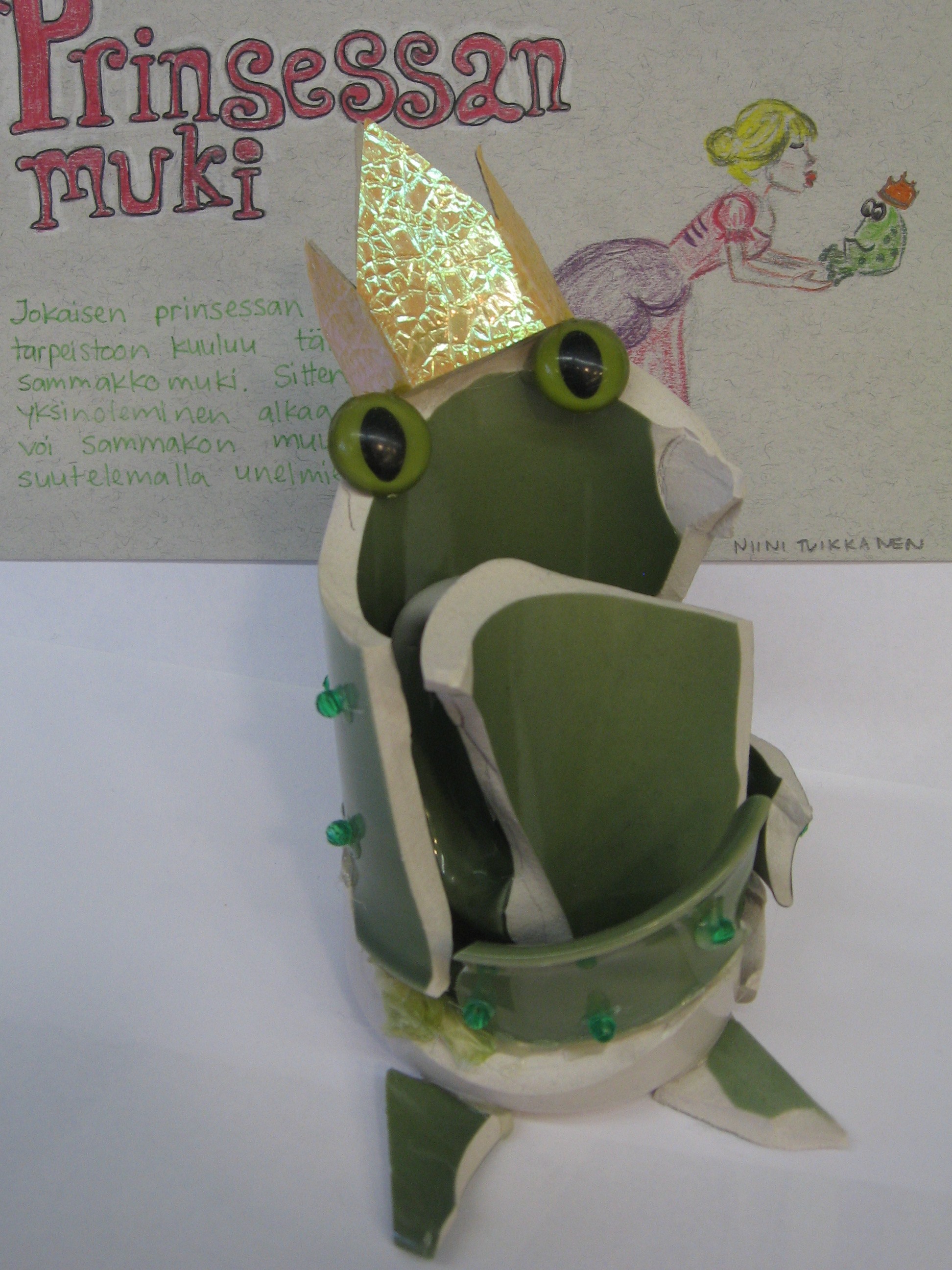 Kuvataiteen kurssilla juteltiin kirpputorilta ostettujen mukien ulkonäöstä ja arvuuteltiin niiden entisiä omistajia . Pakkasaamun kunniaksi kuvisluokkaan lainattiin kahvinkeitin ja juotiin aamukahvit keskustellen suomalaisesta kahvikulttuurista ja kahvinkeittimen muotoilusta. Kirpputorimukit olivat viimeistä kertaa käytössä, sillä kahvittelun jälkeen muki rikottiin vasaralla tehtävän raaka-aineeksi.