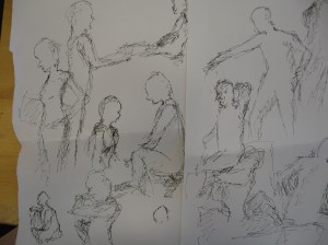 Croquis - eli minuuttipiirrokset harjaannuttavat havainnointikykyä. Ihmisen mittasuhteet tulevat tutuksi.
