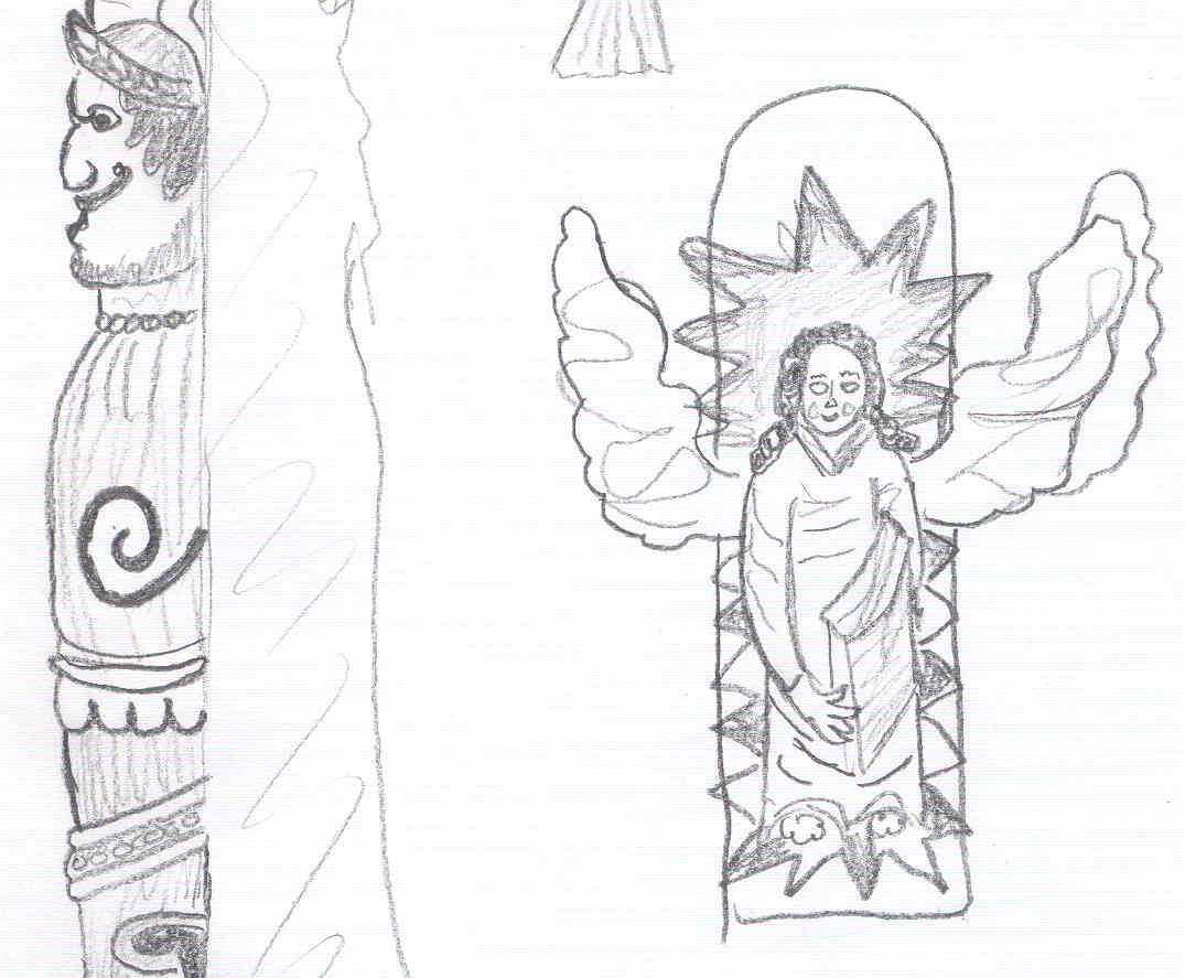 KU9 Kuvanviesto ja keramiikka- kurssilaisten kanssa on ollut tapana vierailla Raahen museon ainutlaatuisessa kirkkosalissa, jossa on pysyvästi esillä 1600-luvun puuveistoksia ja vanhan kirkon maalauksia. Kellotapuliin siirretyt esineet säilyivät Raahen kirkon palosta 1908. Pietari Brahen lahjoittamasta tammesta veistetty saarnastuoli tuhoutui palossa. Kirkon palosta kerrotaan mm. lauantain 25.7.1908 Raahe-lehdessä. Kirkkosalissa on esillä Mikael Toppeliuksen maalausten koristama Pulkkilan kirkon saarnastuoli. Kirkkosalin veistokset on tehnyt luultavasti ranskalainen Michel Balt. Museo-oppaan kertoessa veistosten värikkäitä taustoja, kurssilaiset piirsivät yksityiskohtia veistoksista lyijykynäpiirroksiksi. Piirtäessä tulivat tutuksi niin pyhimyslegenda Agathasta kuin myös Suomen vanhimmaksi tituleerattu vaivaistukki.
