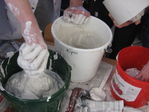 Savimallineista otetaan kipsimuotit. Kipsimuottien avulla voidaan tehdä useita samankokoisia esineitä kurssin kuluessa kokeillen erilaisia keramiikan lasitteita.