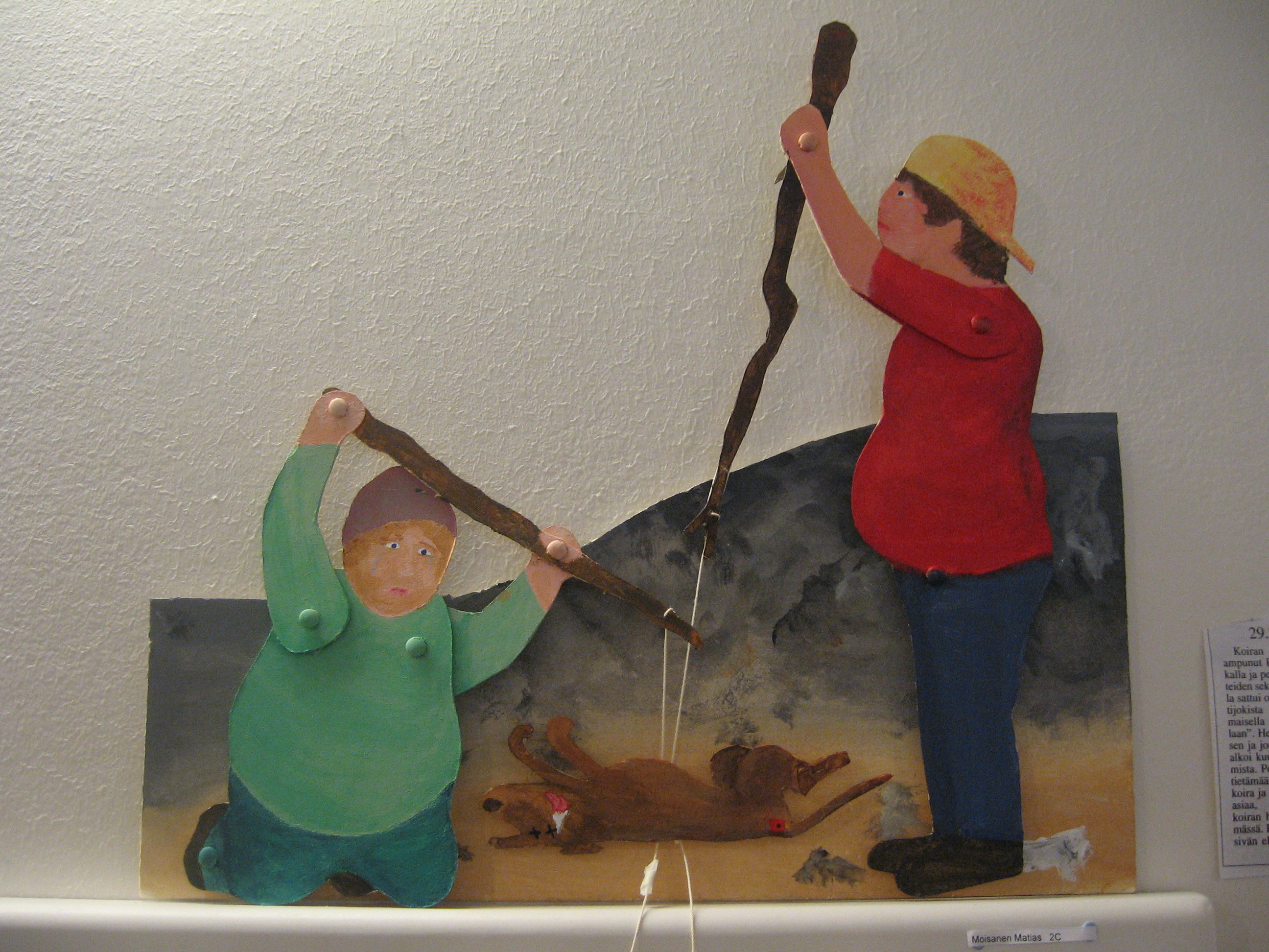 Kuvataiteen KU4-kurssilaiset tekivät sätkynukkeja Raahen Seudun vanhojen lehtiartikkeleiden pohjalta. Tehtävässä tutkittiin ihmisen mittasuhteita ja kuvattiin Raahen Seudussa aikoinaan uutisoitu tapahtuma. Lehtiartikkelit ovat vuosien takaa, pääasiassa 1930-luvulta. Ihmisten asentoja ja mittasuhteita harjoiteltiin croquis-piirroksia tekemällä.