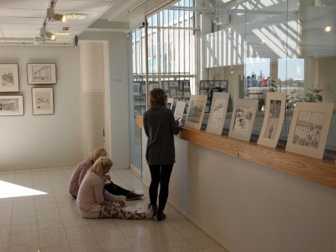 Galleriavierailu oli ihan ok. Pilapiirrokset olivat tosi hienoja. Uutena asiana opin, että ne tehdään isommiksi, mitä ne ovat lehdessä. Pekka