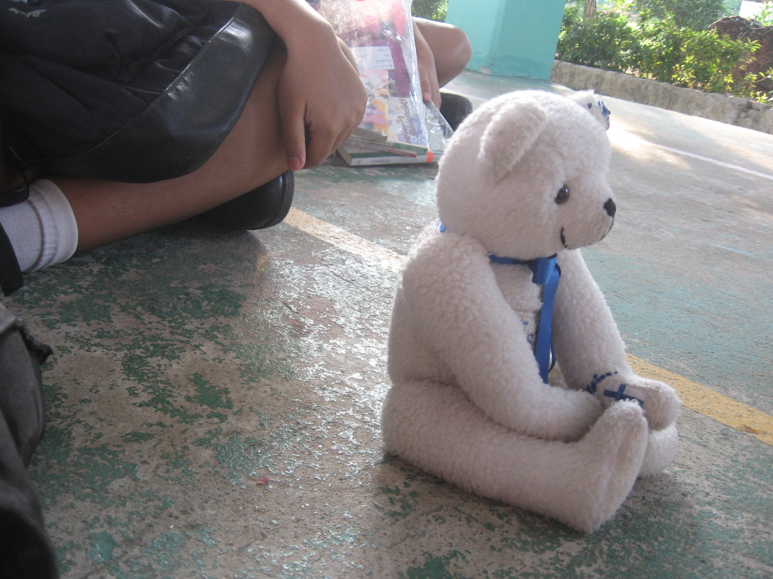 When Arttu was with me in the school, almost everyone noticed him. Some of the bravest even yelled: เอมมี่ ตุ๊กตาน่ารัก! which means: ”Emmi! Your doll is cute”. My friend, Michel even sang and danced with him. Students didn´t fully understand the purpose of Arttu, because almost no-one can speak English fluently, and my thai is not so good yet.