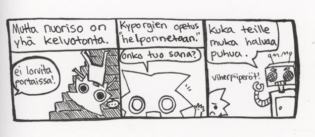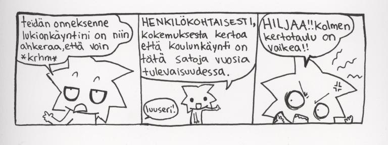 Eevin sarjakuva palkittiin lukiosarjan parhaana. Sarjakuva käsittelee tulevaisuuden koulua. Huikea 500 euron palkinto kannustaa jatkamaan persoonallisten sarjakuvien ja oman sarjakuvablogin parissa.