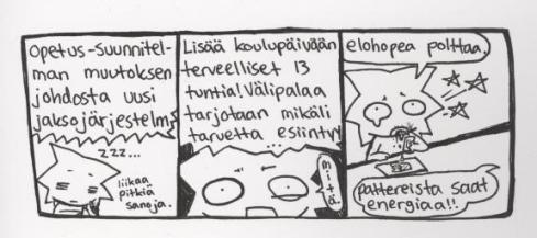 Eevin tulevaisuuden koulua käsittelevä sarjakuva: