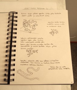 …Hyviä puolia työssäni on ukkelit. En koskaan ollut kunnolla piirtänyt liikkuvaa ihmsitä, enkä varsinkaan lihaksistoa. Suoriuduin piirtämisestä mielestäni yllättävän hyvin. Sain ukot näyttämään lihaksikkailta ja liikkuvilta. Myös hankala viivavarjostustekniikka meni mielestäni hyvin. … En ole tyytyväinen työssäni kaikkiin varjostuksiin ja tasojen symmetrisyyteen. Portaissa näkyy kiireys, sillä aika rupesi loppumaan ja en voinyt tehdä niin huolella … lopputuloksena pidän työtä kuitenkin hyvin onnistuneena. Päämääränä oli saada aikaiseksi työ, josta käy moniulotteisuus esille. Minusta työtäni täytyy katsella monesta suunnasta että ymmärtää sen täysin.