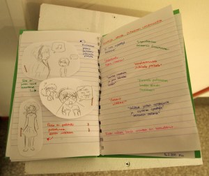 Jokatapauksessa olen ja en ole tyytyväinen pieneen taideteokseeni. Se näyttää ihan jonkun pikkulapsen askartelemalta, mutta toisaalta se on kyllä ihan minun näköiseni. Toivottomia mangavaikutteita , kirkkaita värejä ja pakkohan sinne tänne oli pieniä tekstejäkin raapustella. Ali tajuista sarjakuvan tekoa, ei-sarjakuviinkin.