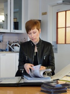 Päivi kertoi luonnostelevansa ja piirtävänsä korut useimmiten käsin. Luonnoksia syntyy runsaasti ja ideoiden taustalla voi olla mistä tahansa löytyvä mielenkiintoinen muoto. – Onneksi kännyköissä on nykyään kamerat! Päivi sanoo ja näyttää lukiolaisille mielenkiintoista valokuvaa, jossa on rytmikkäitä muotoja katukiveyksistä. Tarkkojen piirrosten pohjalta Kalevalakorun kultaseppämestari, niinikään raahelaislähtöinen Miikka Westman mallintaa korut digitaalisesti tietokoneen 3D-ohjelmalla. Tietokoneella luotuihin kuviin saadaan aidon näköinen materiaalintuntu. Päivi suunnittelee useita malleja, joista asiakkaan on helppo valita omiin tarpeisiin sopivin. Yritysasiakkaat tilaavat koruja mm. liikelahjoiksi ja persoonallisiksi muistamisiksi henkilökunnan merkkipäiville.
