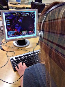 Ensimmäisessä kuvassa nuori pelaa lavastetusti World of Warcraftia, joka selittää että nuoret pelaavat paljon tietokoneella ja konsoleilla. Ulkona ei vietetä yhtä paljon enää aikaan vaan nuoret ovat verkostoituneet ja voivat puhua toisilleen netin sekä pelien välityksillä. Kuvan muokkauksen tarkoituksena oli painottaa tietokonetta ja näyttöön kohdistuu värillisiä valoja korostaen peliä.