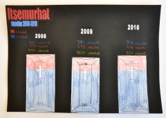 KU2-kurssilaiset visualisoivat valitsemiaan tilastoja. Haasteena oli saada tilastot, luvut ja numerot kuvalliseen muotoon, niin että julistetta katsomalla saa helposti käsityksen valitusta aiheesta. Kuvallisen viestinnän ja kuvajournalismin keskeisiin kysymyksiin johdatti Open Helsinki tiedon visualisointi kilpailu: