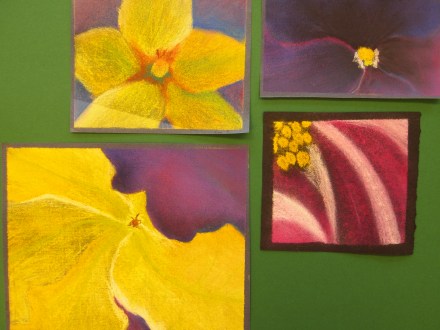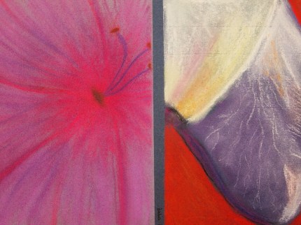 Oli mielenkiintoista päästä etsimään kukista hauskoja yksityiskohtia ja piirtää niitä O’keeffen tyyliin. Pidin kuivapastelleilla työskentelystä, koska se on helppoa ja niillä saa tehtyä kaikkia ihania sävyjä! 🙂 pidin erityisesti värikkäiden ja yksityiskohtaisten kukkien piirtämisestä, sillä niistä sai aikaiseksi mielenkiintoisia töitä, joita katsellessa ei välttämättä edes arvaa että mallina on ollut kukka -Meiju