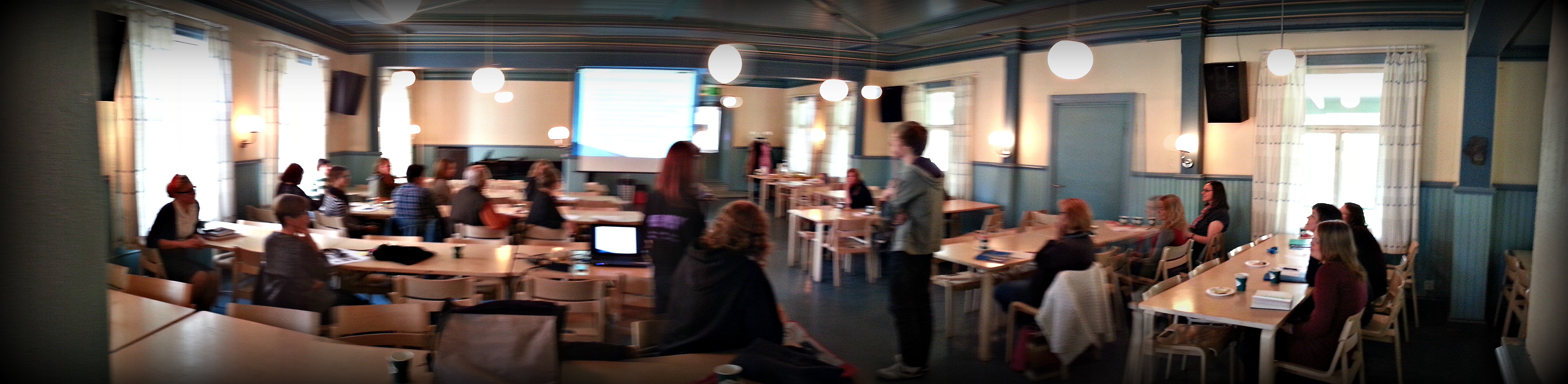 Raahen lukion Hyvä paha peli -hankkeen kurssilaiset esittelivät liikunnallista tietokone- ja konsolipelaamista kiinnostuneelle yleisölle. Vesa, Jasmin ja Saku saivat kuulijat varmasti vakuuttuneiksi, että pelaaminen ei ole aina passiivista tietokoneen ääressä istumista. Tanssipeli innosti kuuntelijat kokeilemaan askeleita Vesan näyttäessä mallia tietokoneeseen liitetyllä tanssimatolla! Pelaaminen ei ole lukiolaisten mielestä myöskään yksinäistä puuhaa. Tanssipelit voivat olla parhaimmillaan yhtä sosiaalista toimintaa kuin edellisten luennoitsijoiden esittelemä perinteinen tanssilavakulttuuri: tanssipeleissä kilpakumppani voi olla viereisellä pelimatolla tanssiva kaveri tai vaikka toisella puolella maapalloa, nettiyhteyden päässä kisaava verkkotuttu. Pelien visuaalisuuteen panostetaan vähintään yhtä paljon kuin perinteisten tanssilavojen arkkitehtuuriin – ympäristön luomalla tunnelmalla on tärkeä osuus. Seminaarin nimen mukaisesti siis liikuttavia ympäristöjä molemmat.