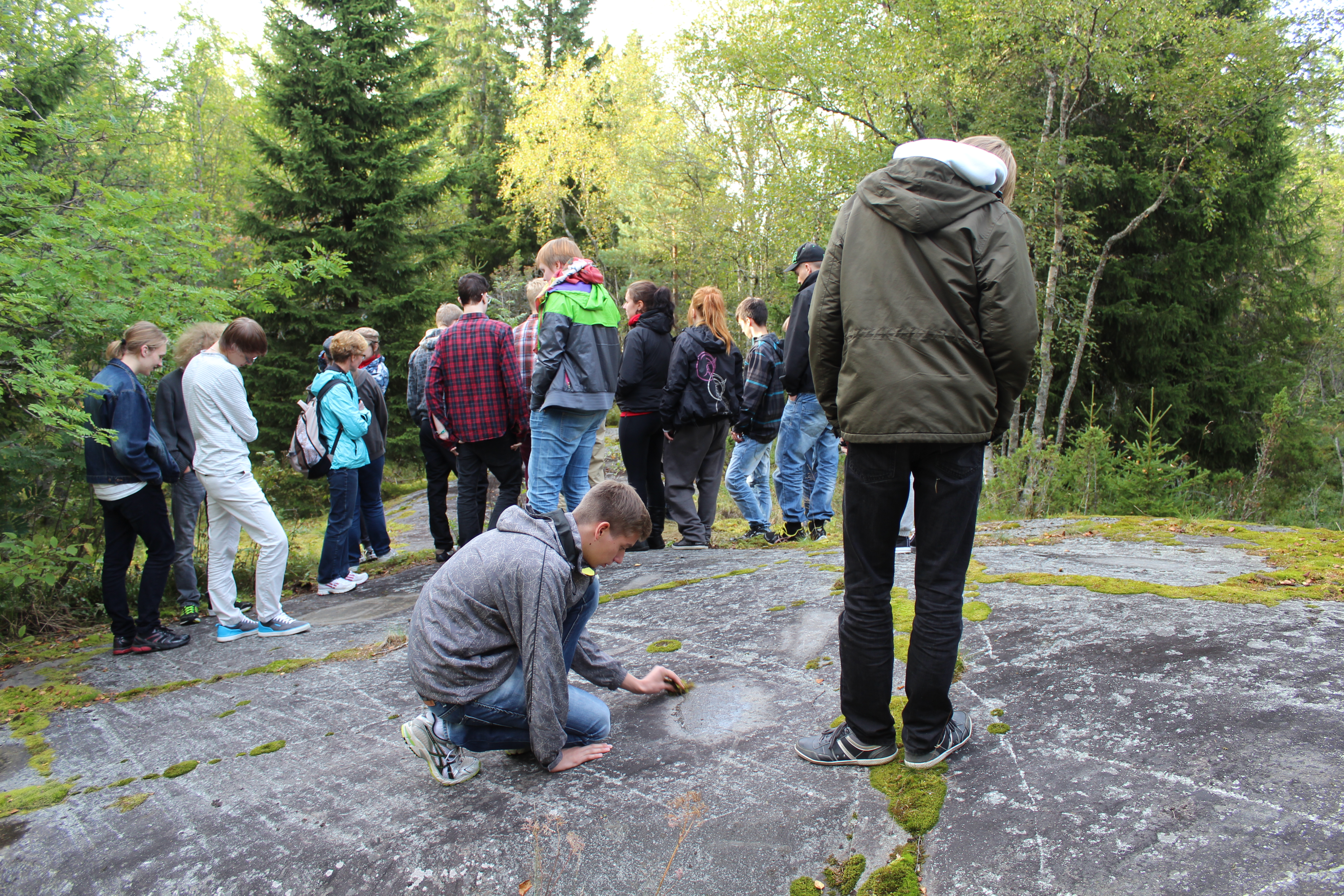 Opiskelijat tutkivat jäätikön kulkusuuntaa, jäkäliä ja maankohoamisrannikon sukkessiota eri menetelmin. Valokuvausryhmä dokumentoi toimintaa ja ideoimme hulvattomasti Kastellin linnanraunioiden matkailun markkinointikeinoja eri kohderyhmille. Pyhäjoen nimikallioilla tiedeleirikoululaiset maalasivat itselle tärkeiden henkilöiden ja paikkojen nimikirjaimia merivedellä ikiaikaisiin kallioihin. Jääkauden raapimassa kalliossa 1700-luvun nimikirjaimet ovat säilyneet vuosisatoja, vedellä maalatut haihtuivat merituuleen minuuteissa. Ajantaju oli koetuksella n. 4000 vuotta sitten rakennetuilla Kastellin linnanraunioilla, jotka olivat tuolloin meren rannalla.
