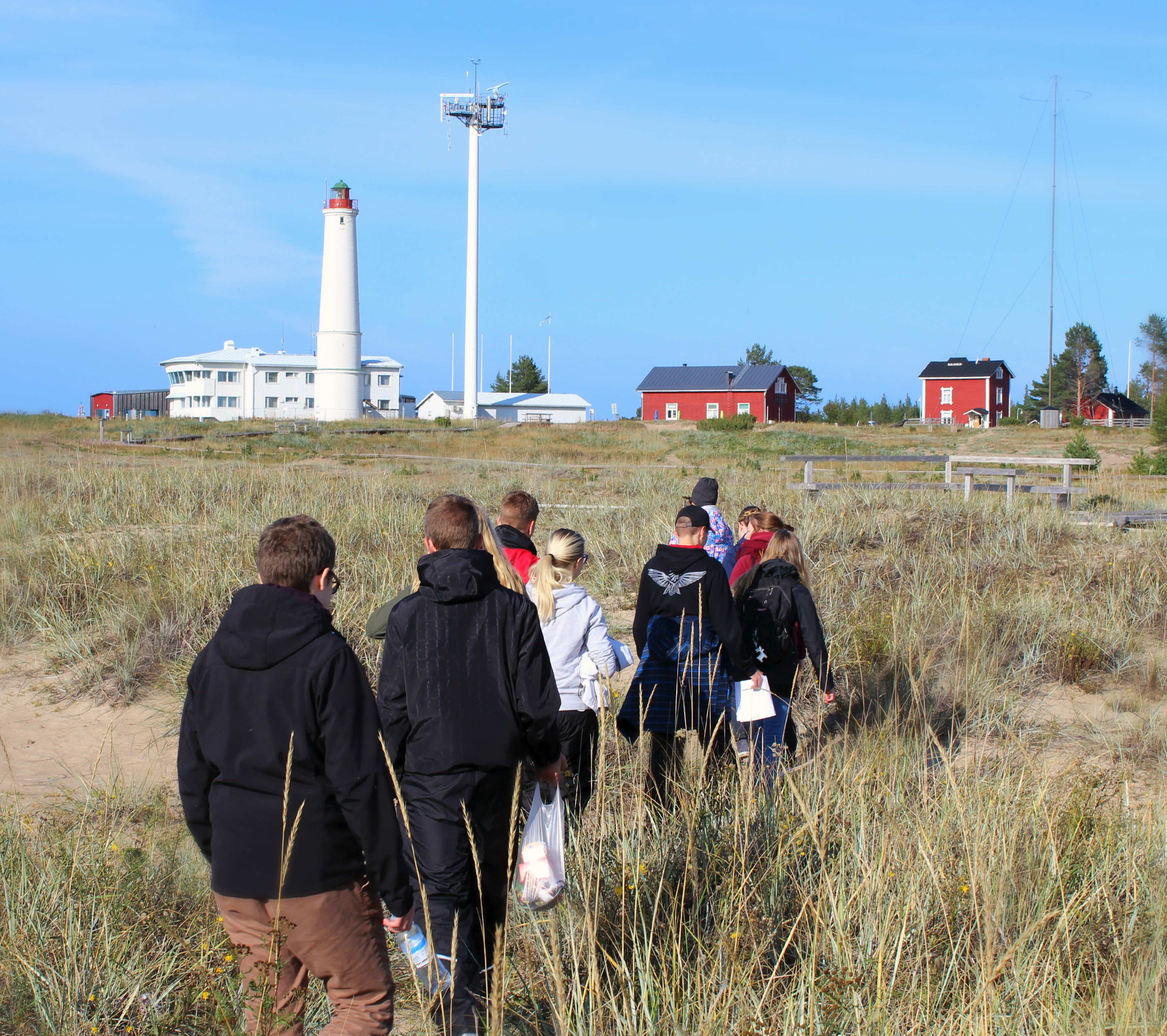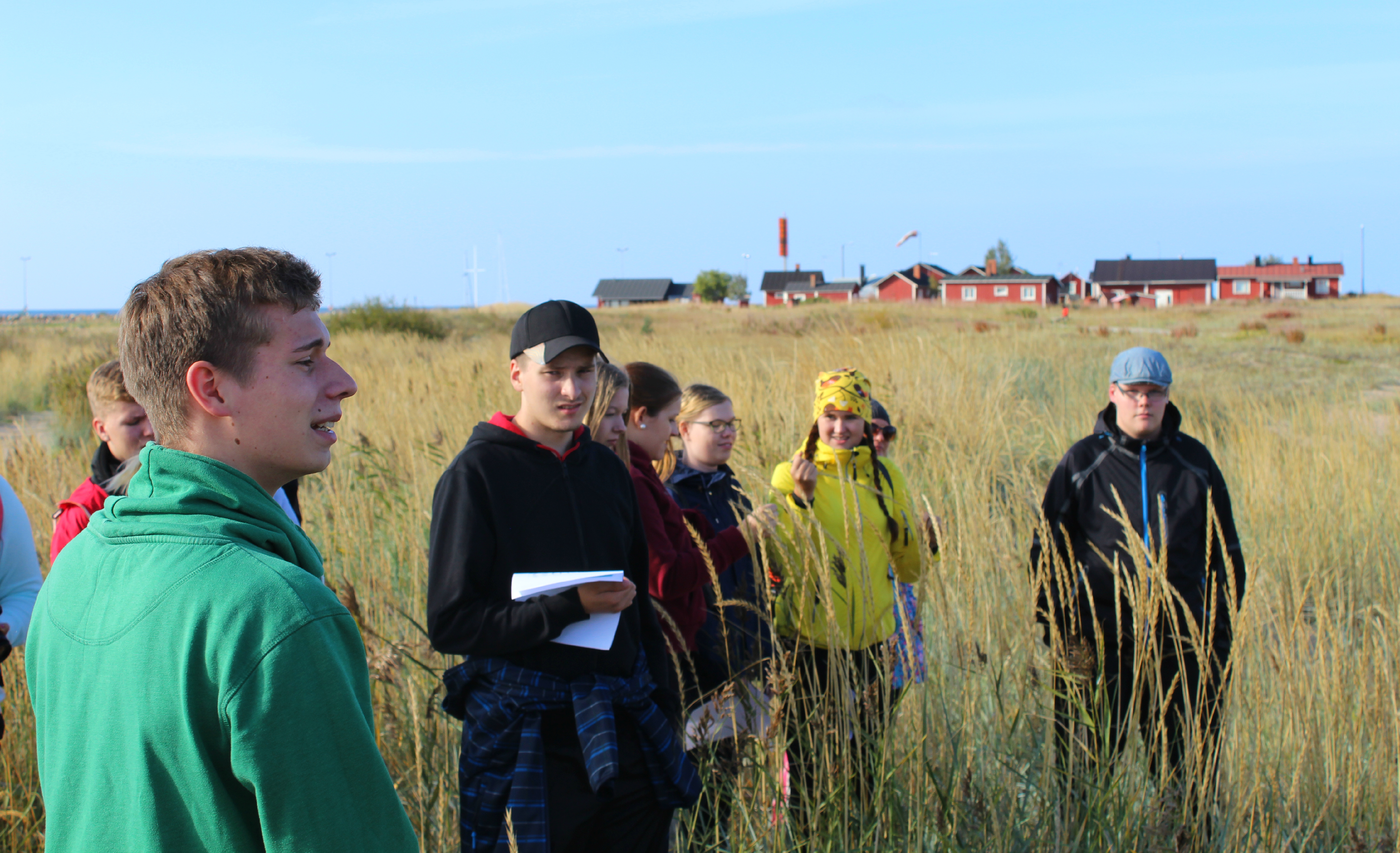 Koska kaikki epäilemättä rakastavat viikonloppuna työskentelyä, lähdimme matkaan kohti Hailuotoa perjantaina hilpein mielin. Matkalla Hailuotoon pysähdyimme Limingan luontokeskukseen, missä lapsenmielisyytemme pääsi valloilleen pelatessamme “Lintujen kahdeksan vuodenaikaa” näyttelyssä olevia digitaalisia lintuaiheisia pelejä. Jotkut meistä kävivät pikaisesti myös lintutornilla, jossa suosituimmaksi kiikaroinnin aiheeksi osoittautuivat lehmät. Kun pelit oli pelattu, lehmät nähty ja kahvit juotu jatkui matkamme kohti Hailuotoa. Eksoottisen lauttamatkan jälkeen koimme mielenkiintoisen bussimatkan Hailuodon idyllisissä maisemissa, kunnes päädyimme Marjaniemeen, jossa majoituimme viikonlopun ajan. Alkupaloiksi nautimme kulinaristisia herkkuja majapaikkamme ravintolassa, jonka jälkeen pääsimme käsiksi itse pääruokaan: ostamiimme herkullisiin grillimakkaroihin, joita paistoimme kotoisassa grillikodassa. Ilta sujui rennosti yhdessä opettajien kanssa tarinoiden ja nukkumaan menimme odottaen seuraavaa leiripäivää intoa puhkuen.