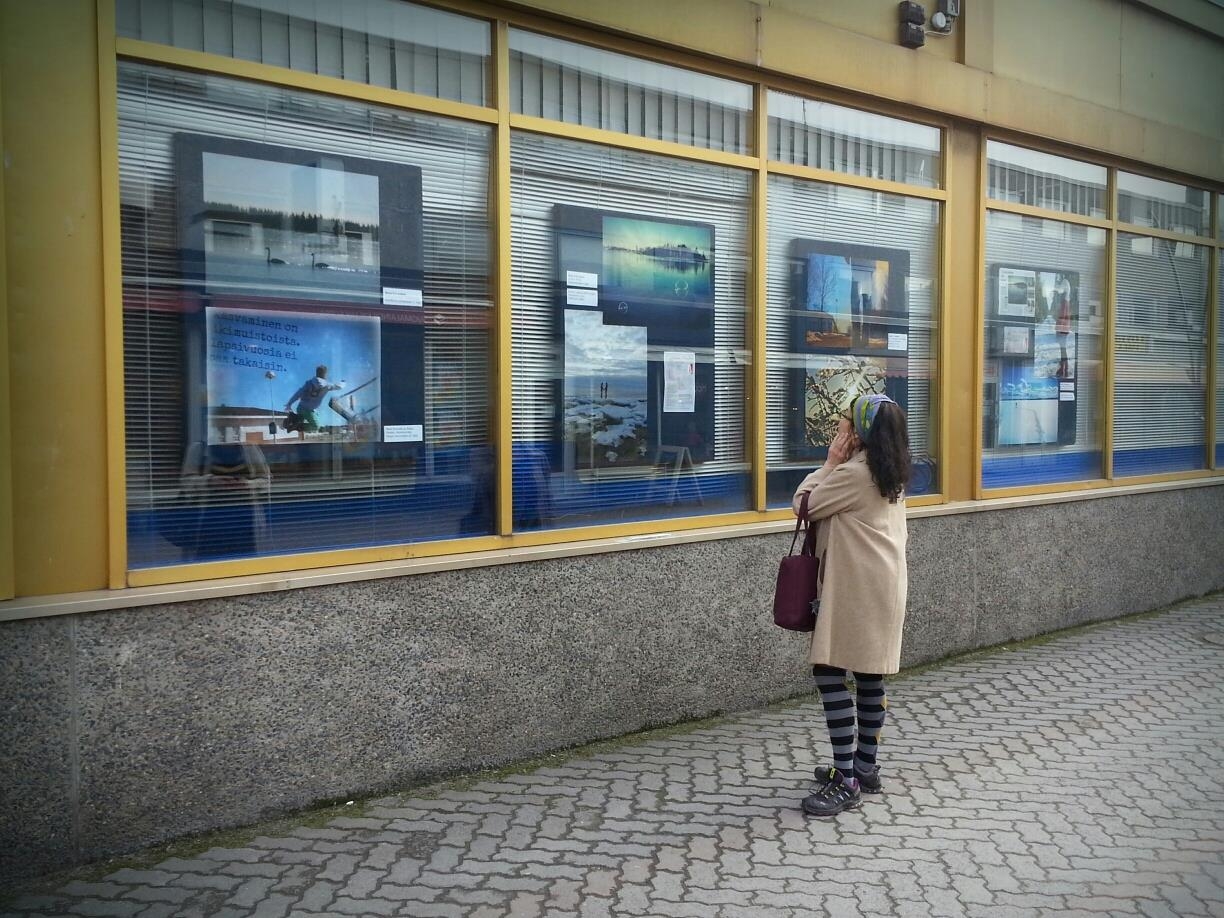 Upeat vedokset kilpailutöistä koristivat Nordea-pankin ikkunaa Raahen kävelykadulla koko kesäkuun ajan.