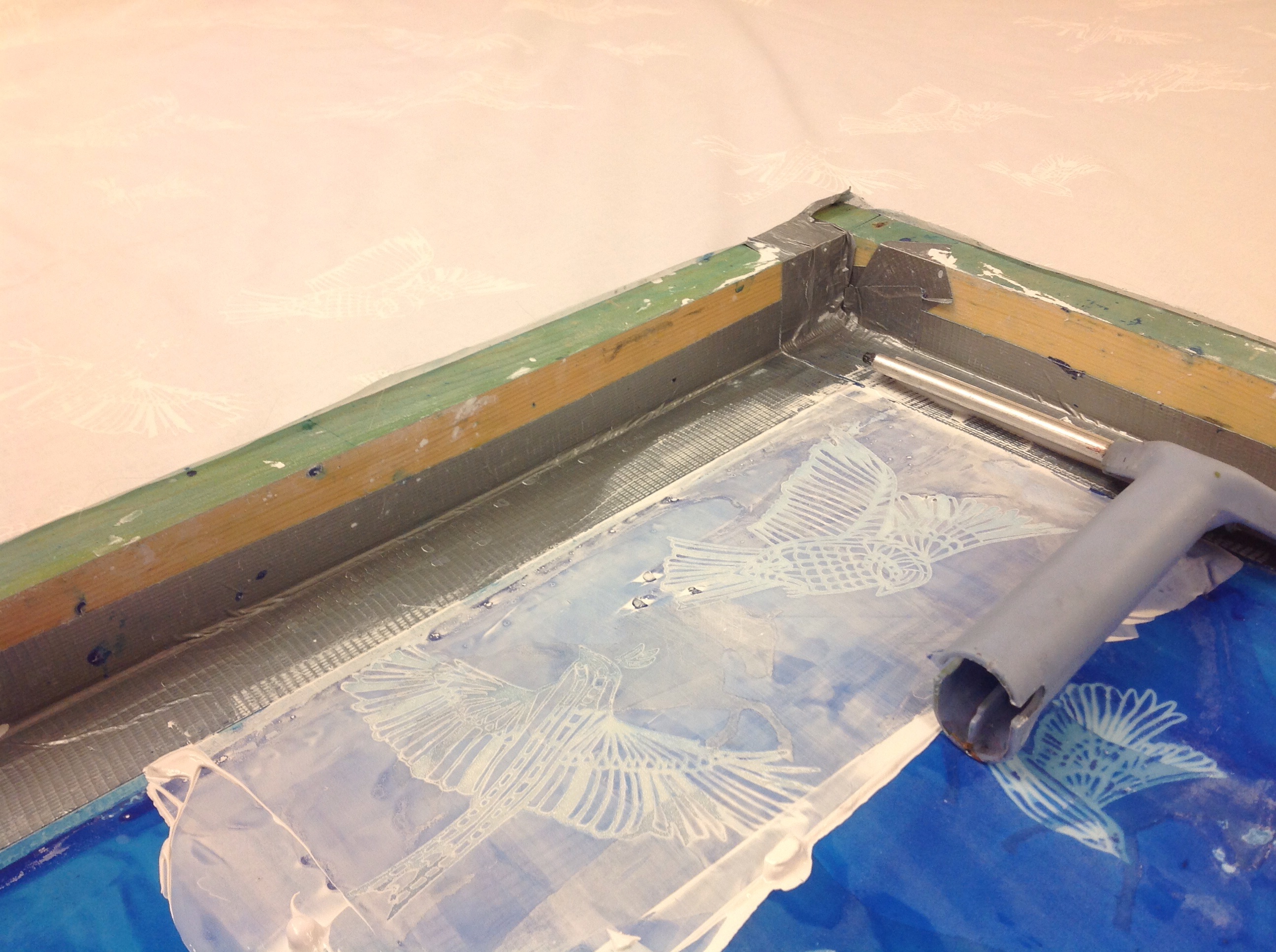 Flying birds. Inspiraationa toimi luonto ja linnut. Mulle linnut kuvaa vapautta ja kauneutta, joten oli kiva tehdä lopputyö niitä teemana käyttäen. Kun suunnittelin kuviota, käytin apuna nettiä lintujen asennoissa ja muodoissa – loput on toteutettu omaa mielikuvitusta käyttäen. Toteutuksessa käytin valotuskaaviota ja valkoista painoväriä. Kaavion tekeminen oli hieman haastavampaa kuin olin ajatellut, mutta lopulta se onnistui onneksi ihan hyvin. LIsäksi lintujen sommittelu kankaalle oli haastavaa enkä jaksanutkaan olla sen suhteen kovin tarkka. Positiivista tekniikassa oli sen nopeus, sillä työn sai yllättävän nopeasti valmiiksi. En tiedä vielä, että mitä kankaasta lopulta tulee, mutta varmaan jotakin tulevaan omaan kämppään. Kokonaisuudessaan onnistuin mielestäni työssä hyvin ja olen tyytyväinen lopputulokseen. Jenni