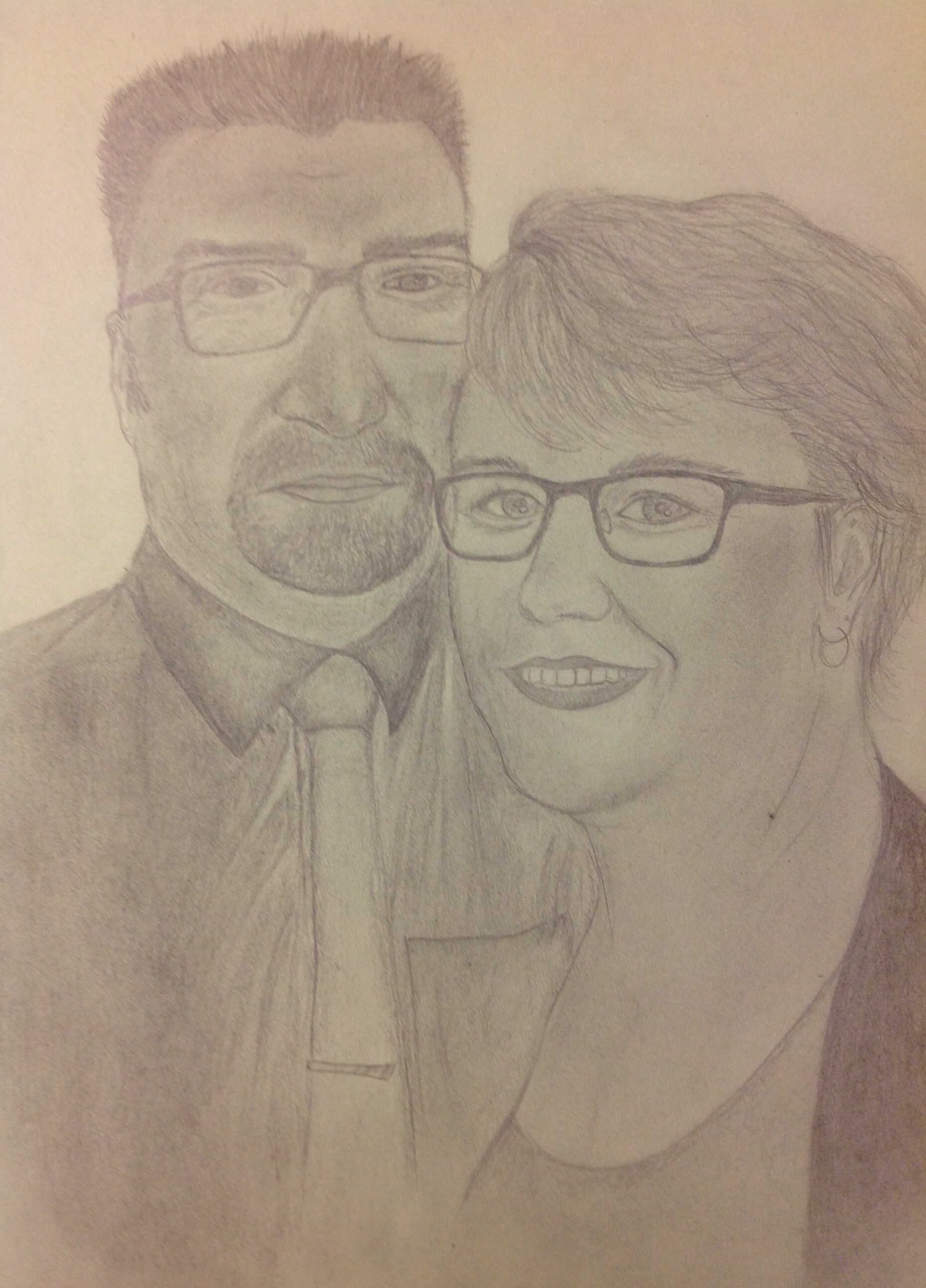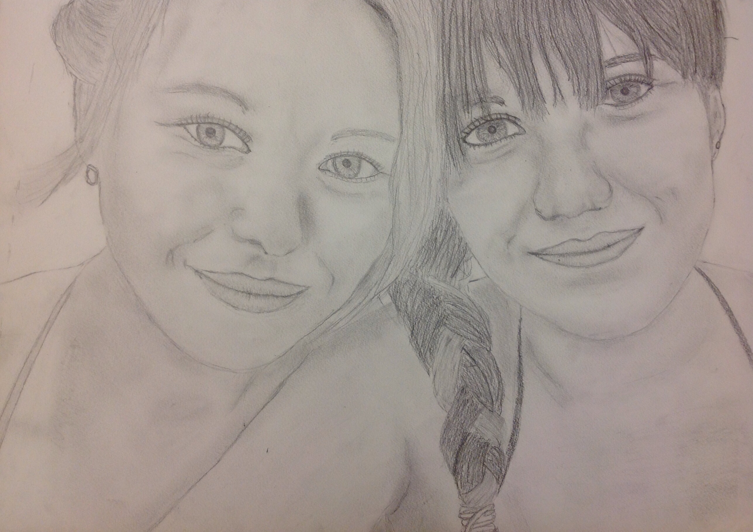 Halusin piirtää työni lyijykynällä, koska pidän piirtämisestä. Piirsin työni valokuvasta. Valitsin kuvan, koska se oli kiva kuva ja halusin haasteita – tässä kuvassa on kaksi ihmistä. Mielestäni lopputyöni on onnistunut. Piirros ei näytä ihan samalta kuin alkuperäinen kuva, mutta piirroksesta tunnistaa kyllä henkilöt. Työstä olis voinut tehdä vielä tarkemman jos olisi ollut aikaa enemmän. Mutta itse olen tyytävinen. Piirroksen annan todennäköisesti ystävälleni joululahjaksi. Juulia