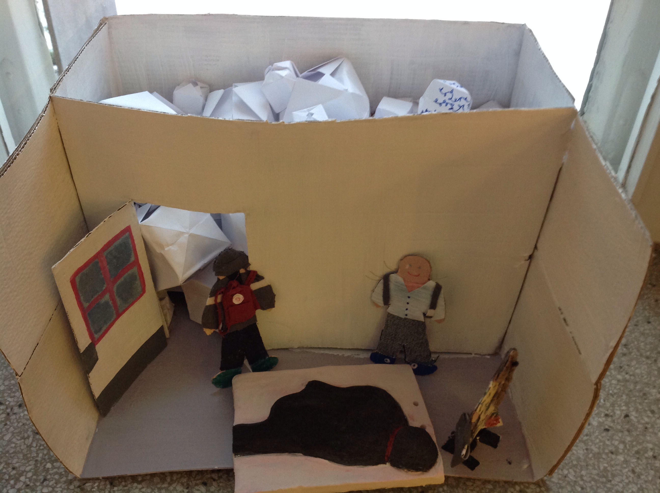 Portti ”KEN TÄSTÄ KÄY, SAA KAIKEN TOIVON HEITTÄÄ” Rakenna valitsemistasi materiaaleista otsikkoon liittyvä tila, jossa ovi on keskeinen elementti. Sijoita tilaan kolme ihmishahmoa. Tila voi olla pahvilaatikko, paperikassi, tölkki tms. ja ihmishahmot voivat olla esim. kaksiulotteisia pahvista leikattuja hahmoja.