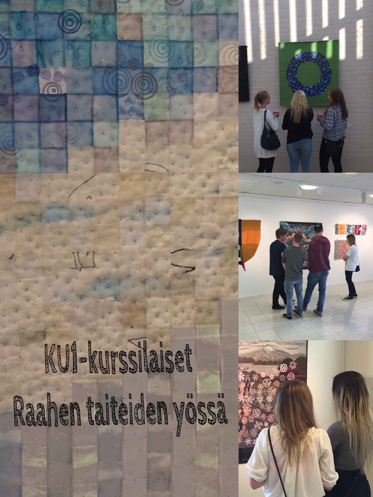Kaksi KU1-ryhmää osallistui PISTOJA-taidenäyttelyn avajaisiin taiteiden yönä 2015. Tarjolla oli värikäs kattaus tekstiilitaidetta ja mukavasta tunnelmasta piti huolta rupatteleva joukko taiteilijoita.