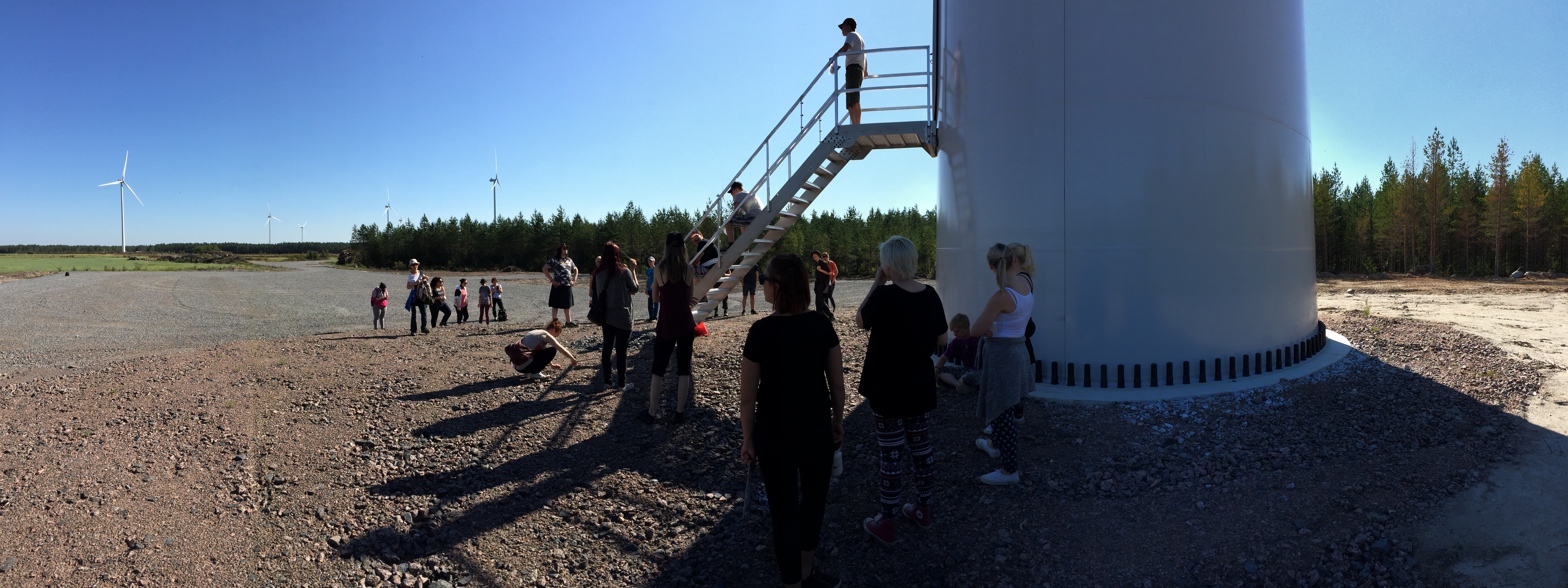 Tuulivoimaan leiriläiset tutustuivat Mustilankankaan tuulivoimapuistossa.