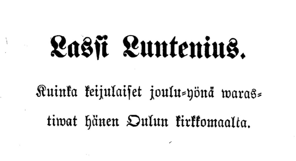 Dickensin Saiturin joulu -kirjan tarinan tapaan kyyninen Luntenius ymmärtää Oulun kirkkomaalla joulupäivän valjettua, että kun hän asetti kaikki pahat puolet maailmassa sen hyviä puolia wastaan, niin hän tuli siihen päätökseen, että maailma, jossa elämme, kuitenkin on hyvä ja soma maailma.