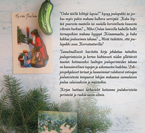 Taidetalo Väinölään koottuun näyttelyyn on valikoitu tunnelmallisia valokuvia joulutavoista ja ruokalajeista. Kuka muistaa saaneensa koulun kuusijuhlasta nisupukin? Ja millaisia ruokia ja leivonnaisia joulupöytään nykyään kannetaan? Osassa ruokalajeista on tehty mummulan ruokaa uudella tavalla; vai miltä kuulostavat tähdenmuotoiset näkkileivät savuporon kera? Tärkeässä roolissa ruokakuvissa ovat myös Pohjois-Pohjanmaan maisemat ja mummulan henkeen sopivat nostalgiset esineet, jotka herättävät katsojassa lapsuusmuistoja.
