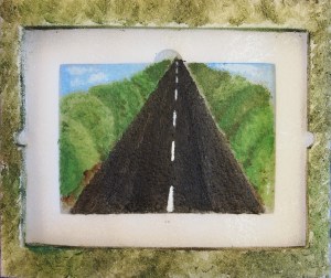 KU1– kurssilla keskusteltiin taidekuvia katsellen kuvan perusmuuttujista ja sen jälkeen kokeiltiin kuvan luomista itse: pakkausmateriaaleihin toteutettuun akryylivärityöhön maalattiin vapaavalintainen näkymä, jossa tutkittiin syvyysvaikutelmaa. Kolmiulotteisuutta saattoi luoda askarrellen maalauksen kolmiulotteiseksi tai tekemällä maalaukseen kolmiulotteisuutta luovia kohtia värein. Luokassa toisteltiinkin ahkerasti syvyysvaikutelmaa luovia keinoja: viivaperspektiivi, iso-pieni, tarkka-epätarkka, päällekkäisyys, ilmaperspektiivi: vaalenee ja viilenee näkymän kaukana olevissa kohdissa…