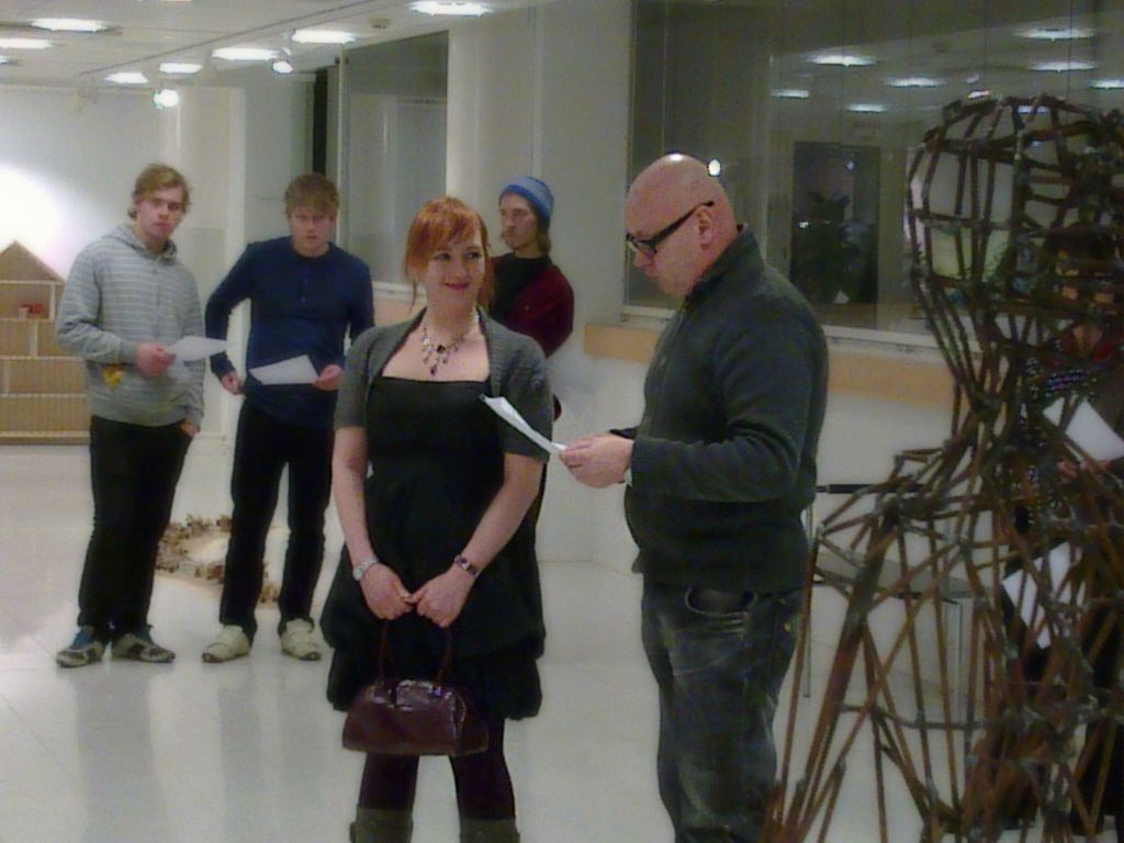 ”Näyttely oli ihan mukava kokemus eikä aika tullut pitkäksi. Näyttelyavajaisissa en ole ennen käynyt, mutta näyttelyissä kyllä. Eläinmaalaukset olivat mukavia sekä harjateräksestä tehty nainen. Aina töiden hintoja ei ymmärrä, koska itsestä tuntuu, että tietty työ ei ole niin arvokas kuin hinta on. Kaikin puolin mukava kokemus. Mukava keskustella teoksista, kun on oppinut uusia termejä tunneilla =)”