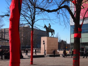 Jotkut ohikulkijat pysähtyivät ja kyselivät mitä oikein teemme. Eräs aikoi tulla illalla katsomaan mitä on saatu aikaan. Positiivisia kommentteja! Hanna
