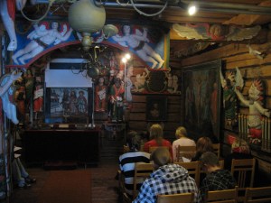 Kirkkosalin veistosten lisäksi kuulimme lyhyesti museon pienestä kiinalaisten esineiden kokoelmasta. Merimiesten ja matkalaisten tuomana on raahelaiskoteihin jo 1800-luvun puolella tullut runsaasti tuulahduksia kaukomaista. Museon yläkertaan on koottu matkamuistoja ja tuliaisia ulkomailta.