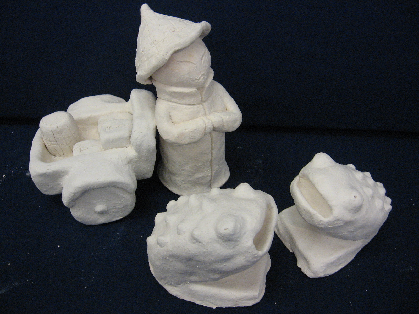 Syksyn 2. jaksolla niin KU2 kuin kuvanveistoon tutustuvat KU9 opintojakson opiskelijatkin tekivät kahta materiaalia yhdistelevän veistokset. Monille kosketus keramikkaan oli ensimmäinen ja savityöskentelyyn käytiinkin leppoisasti taikahiekkaa muokkaamalla. Motoriikkaa, muotoilua, kolmiuloitteista hahmottamista ja vieruskavereihin tutustumista heti ensimmäisellä oppitunnilla. Taikahiekalla rakentelu on koukuttavaa ja hauskaa, tehdyt hahmotelmat eivät pysy kauaa kasassa ja niinpä kynnys muovailuun on matala. Pian keskityimmekin pysyvämmän keramiikkaveistoksen tekemiseen: