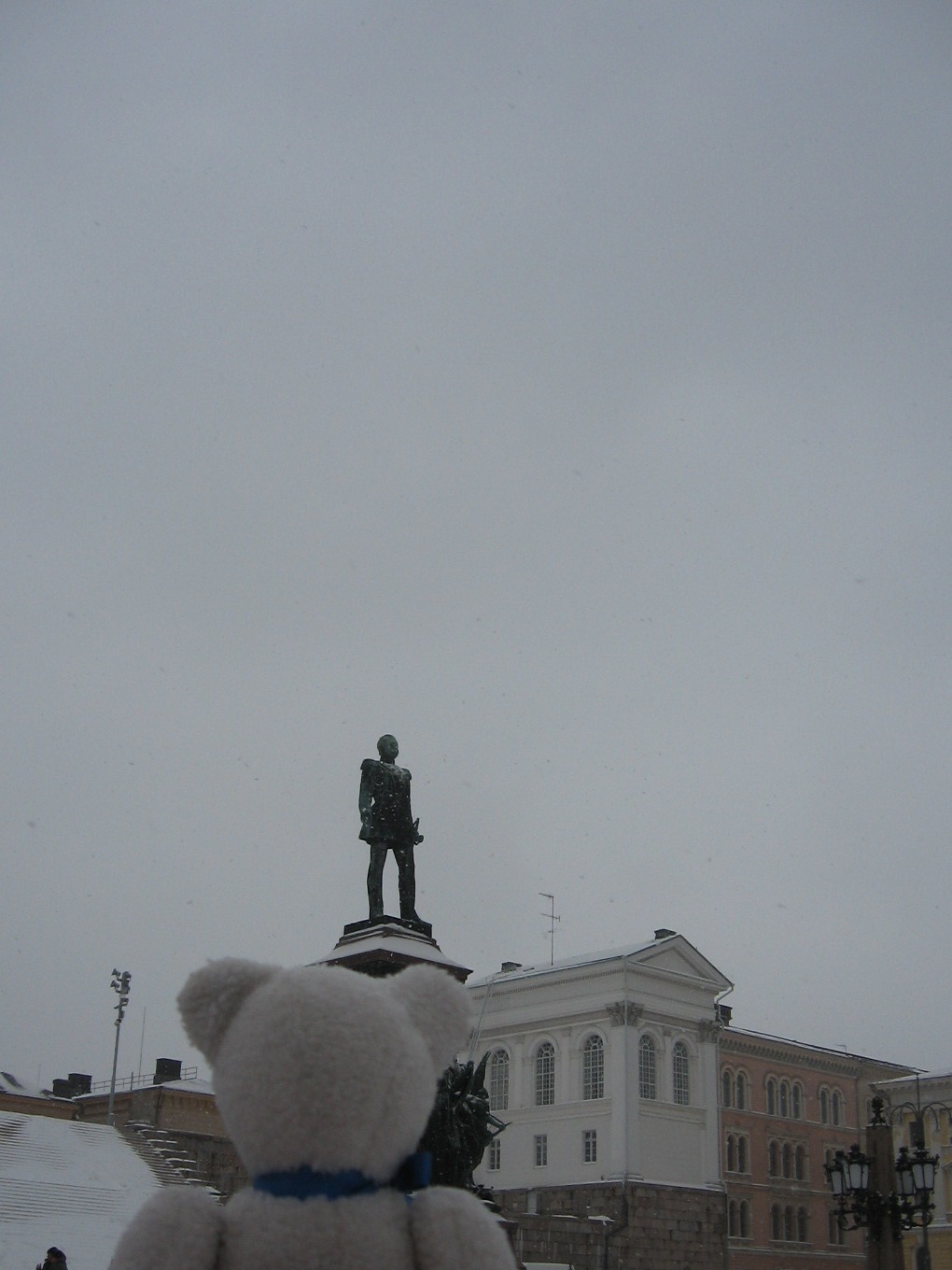 Ihailimme myös Helsingin tuomiokirkkoa, sekä rakennuksesta poispäin katselevaa Aleksanteria. Eva ja Tintti olivat jäädä jälkeen kun laskeuduttiin yli 40 jäistä porrasta. Lammas ja juures harppoivat jo horisontissa Artun kanssa kun osasivat ynnätä yllättävän väen vähentymisen ja ”ODOTTAKAA!!” -huutojen merkityksen.