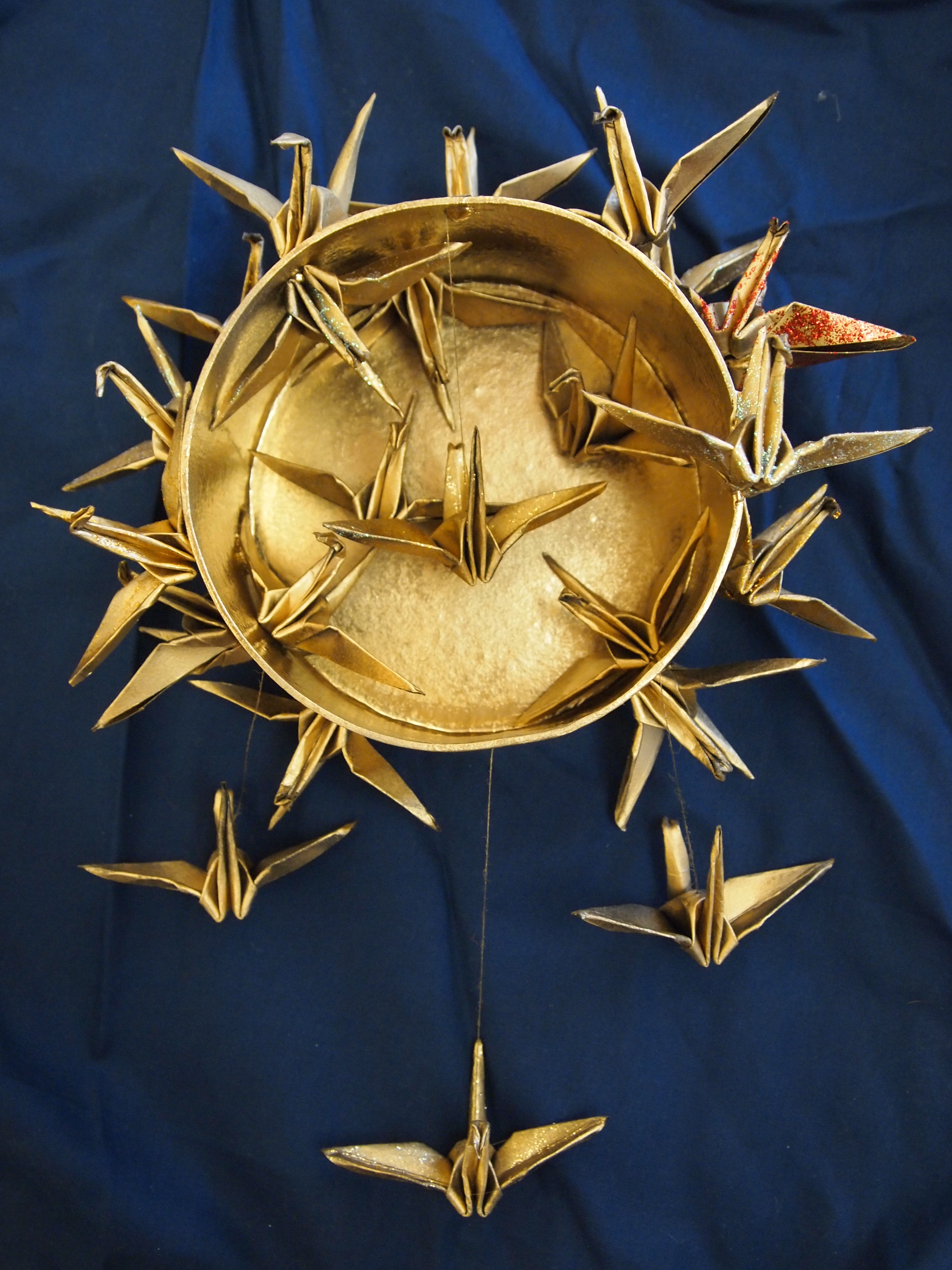 Japanilainen paperitaittelu, origami sai uuden ilmeen kun Aliisa teki origamikurjista kimalteella kuorrutetun kultaisen taideteoksen.
