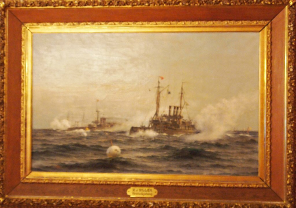 Salin päätyseinällä on suuri ´Taisteluammunta´-öljymaalaus. Jonka raahelainen laivanvarustaja Henrik Sovelius on voittanut aikoinaan Tukholmassa järjestetyissä kuninkaallisissa arpajaisissa. Kerrotaan, että kuningas Oskar II olisi halunnut lunastaa taulun itselleen suuresta summasta, mutta maalaus päätyi Soveliuksen tahdosta Raaheen.
