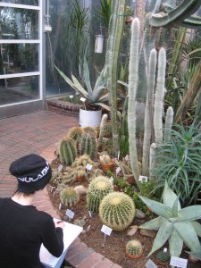 Oulun yliopiston kasvitieteellisessä puutarhassa pääsimme pienelle etelänmatkalle palmujen katveeseen. Ulkona oli metrinen hanki ja lasihuoneiden räystäillä roikkui pitkiä jääpuikkoja, mutta sisällä rehottivat eksoottiset kasvit. Suurimmalle osalle vierailu näin suuressa kasvihuoneessa oli uutta ja kommentit olivat sen mukaisia: ”Kasvitieteellinen oli ehdottomasti päivän kohokohta, kun pääsi valokuvaamaan ja piirtämään!”
