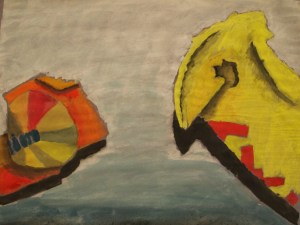 KU1 -kurssilla piirrettiin croquis-piirroksia joiden pohjalta teimme pieniä saviveistoksia. Saviveistoksissa oli tavoitteena ihmisen anatomian ja eläinhahmojen yhdistäminen. Pian kuvisluokassa olikin joukko kenteureja, merenneitoja, minotauroksia, egyptiläisiä jumalia ja muita eläimen ja ihmisen anatomiaa yhdisteleviä hahmoja. Tässä esitellyt savityöt on kuvattu osasuurennos-harjoituksen päällä. Osasuurennoksissa harjoiteltiin värien sekoittamista suurentamalla Suomen taidehistorian merkkiteoksista rajattuja osia.