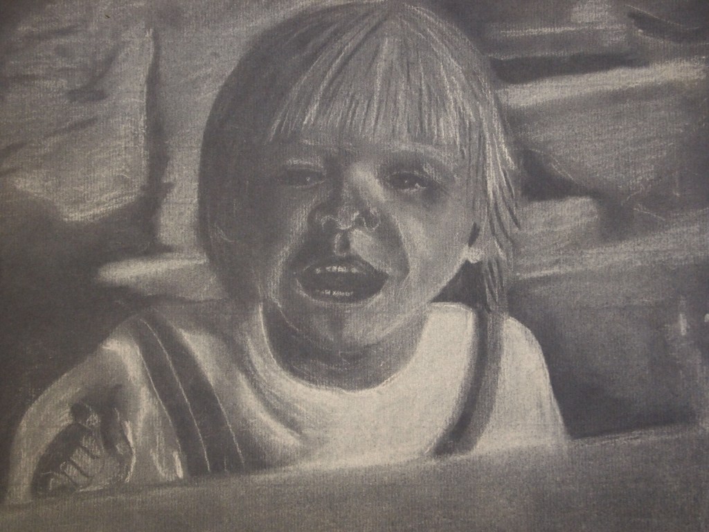 Tavoitteena oli saada eri valööreitä ja saada työhön näkymään valon ja varjojen erot. Mielestäni saavutin asettamani tavoitteet, työssä näkyy kohdat, joissa valoa on kaikista eniten ja kohdat joissa vallitsee varjo. Lapsen kasvoista näkee valon tulosuunnan ja mielestäni erityisesti se kohta onnistui. Jos saisin tehdä uuden työn, ottaisin kotoa samantapaisen kuvan, jossa on siskoni lisäksi myös minä pienenä tyttönä. Opin että kuvista voi piirtää kohtia, jossa näkyy vain valon valaisemat kohdat, eikä aina piirtää vain varjoja. Kerrankin näin päin. Henna