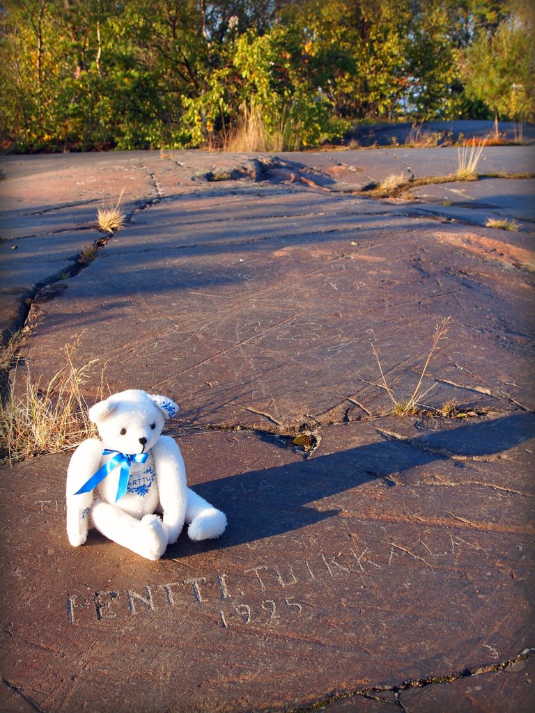 Kuviksen Arttu-nalle löysi Raahen yhteislyseon legendaarisen piirustuksen opettajan Pentti Tuikkalan nimikirjoituksen vuodelta 1925 Pyhäjoen kalloilta.